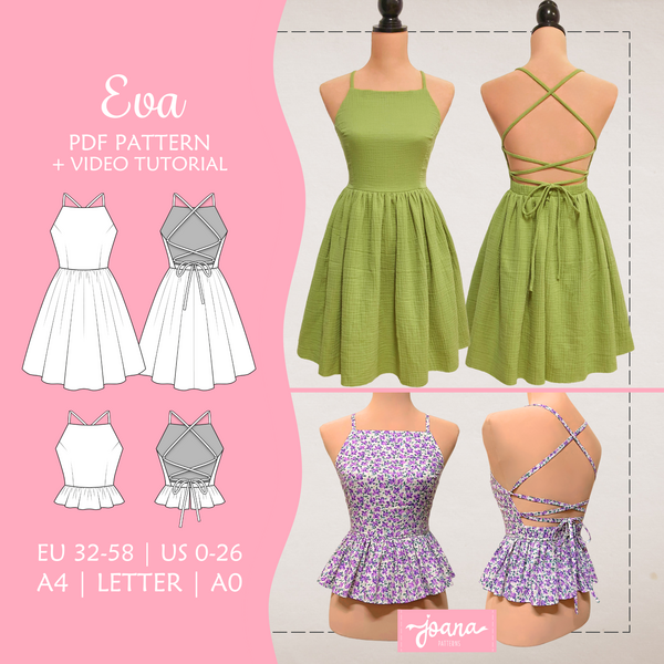 Patrón de costura de vestido cuello halter y espalda descubierta | EVA | 14 Tallas/ 14 Sizes | PDF A4-LETTER-A0