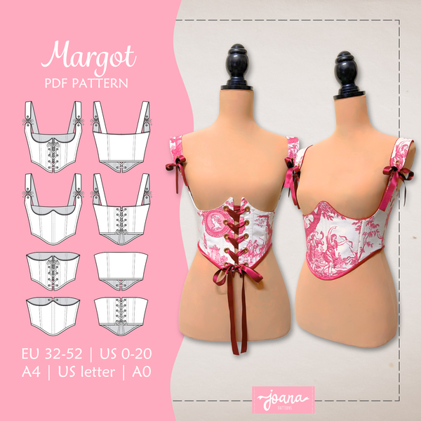 Patrón de costura de corset con lazos en hombros | CLARISSE | 14 tallas/14 sizes | PDF A4-LETTER-A0