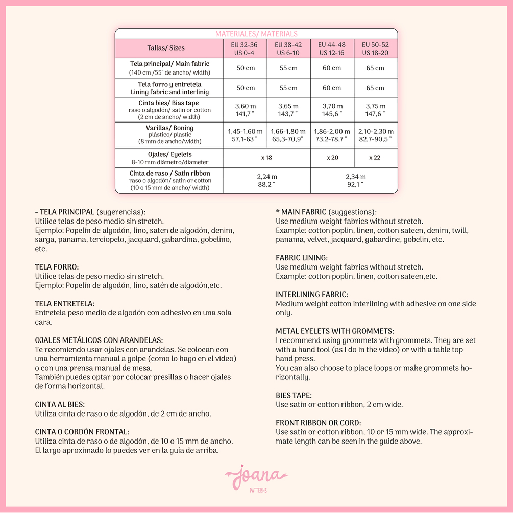 Patrón de costura de corset con cordón delante | MAITE | 11 tallas/11 sizes, PDF A4-LETTER-A0